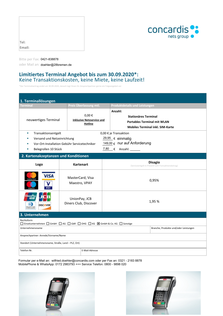 *Der Terminalvertrag endet am 30.09.2020, danach lege ich Ihnen ein Folgeangebot vor.